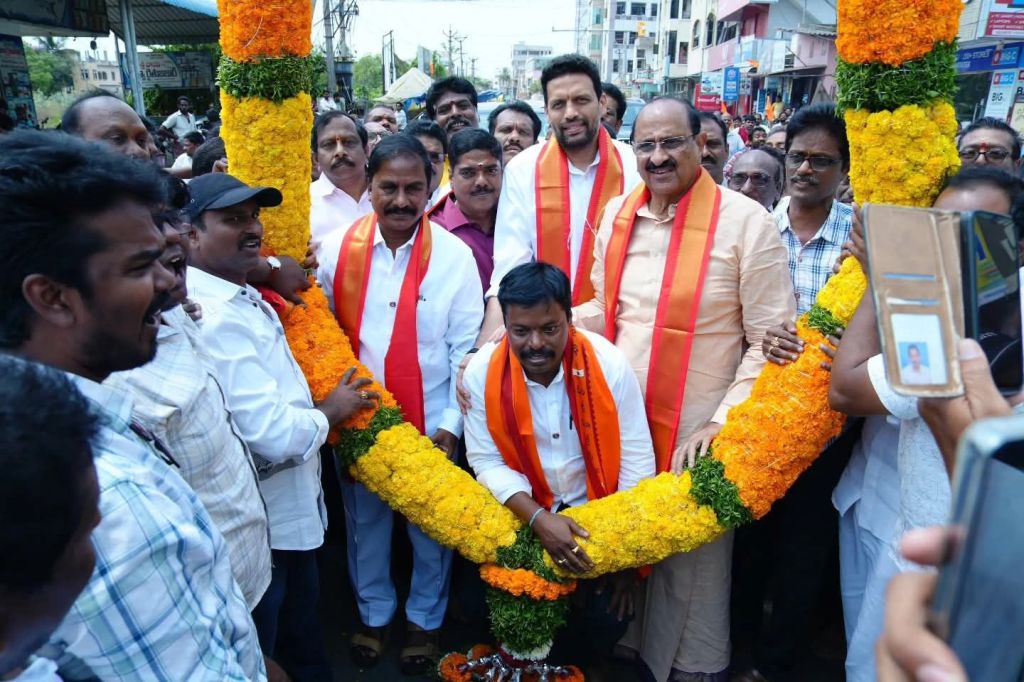 *కైకలూరులో వాసవీ కన్యకా పరమేశ్వరి అమ్మవారి కల్యాణ మండపం ప్రారంభం* ఏలూరు జిల్లా కైకలూరులో వాసవీ కన్యకా పరమేశ్వరి అమ్మవారి కల్యాణ మండపం ప్రారంభోత్సవ కార్యక్రమంలో ఎమ్మెల్యేలు కామినేని శ్రీనివాస్ గారు, శ్రీరామ్ రాజగోపాల్ తాతయ్య గారు, ఎమ్మెల్సీ జయమంగళ వెంకటరమణ గారు, ఆర్యవైశ్య నాయకులతో కలిసి నేను పాల్గొన్నాను. ఆర్యవైశ్యులు వ్యాపార రంగానికే పరిమితం అవ్వకుండా రాజకీయాల్లోకి కూడా రావాలి. గడిచిన ఎన్నికల్లో 95 శాతం మంది ఆర్యవైశ్యులు కూటమికి మద్దతిచ్చారు. అందుకు తగ్గట్టుగానే సీఎం నారా చంద్రబాబు నాయుడు గారు ఆర్యవైశ్యుల కోసం ఎంతో చేస్తున్నారు. పక్క రాష్ట్రాల్లో ఎక్కడా లేనివిధంగా మన రాష్ట్రంలో వైశ్యులకు మంత్రి పదవి ఇచ్చి గౌరవించారు. ఇక కూటమి ప్రభుత్వంలో రాష్ట్రంలోని అన్ని ప్రాంతాలను సమానంగా అభివృద్ధి చేసే దిశలో ముందుకు వెళ్తున్నాం. #KurnoolMLA #ministerindcomfood #Janamkosamebharath #Janamthobharath #Tgv_Bharath