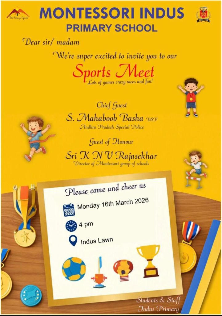 మాంటిస్సోరి ఇండస్ ప్రైమరీ విద్యా సంస్థల స్పోర్ట్స్ మీట్ కు ముఖ్య అతిథిగా పాల్గొన్న స్పెషల్ బ్రాంచ్ డీ ఎస్ పీ మహబూబ్ భాషా!!!