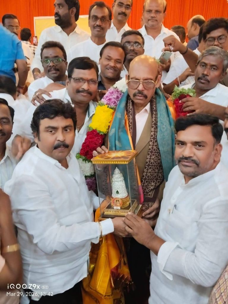 ఈరోజు ఆంధ్రప్రదేశ్ ఆర్యవైశ్య మహాసభ సర్వసభ్య సమావేశం కర్నూల్ లోని సోమిశెట్టి విశ్వ గార్డెన్స్ లో నిర్వహించడం జరిగింది ఈ కార్యక్రమంలో ఆర్యవైశ్య మహాసభ తాజా మాజీ అధ్యక్షులు చిన్ని రామ సత్యనారాయణ అధ్యక్షతన సభ జరిగింది 2026 28 గాను రాష్ట్ర ఆర్యవైశ్య మహాసభకు ఎన్నికల అధికారిగా ఉన్న శ్రీ పెనుగొండ సుబ్బరాయుడు గారు ఆంధ్రప్రదేశ్ ఆర్యవైశ్య మహాసభ నూతన అధ్యక్షుడిగా ఇల్లూరు లక్ష్మయ్య ఎన్నికైనట్టు సర్వసభ్య సమావేశంలో ఎన్నికల ప్రక్రియ గురించి తెలియజేసి డిక్లరేషన్ పత్రాన్ని ఇల్లూరు లక్ష్మయ్య గారికి అందజేయడం జరిగింది ఈ కార్యక్రమంలో రాజ్యసభ మాజీ సభ్యులు శ్రీ టీజీ వెంకటేష్ గారు కూడా చైర్మన్ శెట్టి వెంకటేశ్వర్లు గారు మాజీ అధ్యక్షులు నాగబాబు గారు వాసవి సత్ర సముదాయాల అధ్యక్షులు దేవకి వెంకటేశ్వర్లు గారు సిద్ధ నాగేశ్వరరావు గారు పలు జిల్లాల ఆర్యవైశ్య సంఘాల అధ్యక్షులు పాల్గొని ఇల్లూరు లక్ష్మీ గారిని దృశ్యాలువలతో పూలమాలతో మెమొంటోలతో సత్కరించడం జరిగింది
