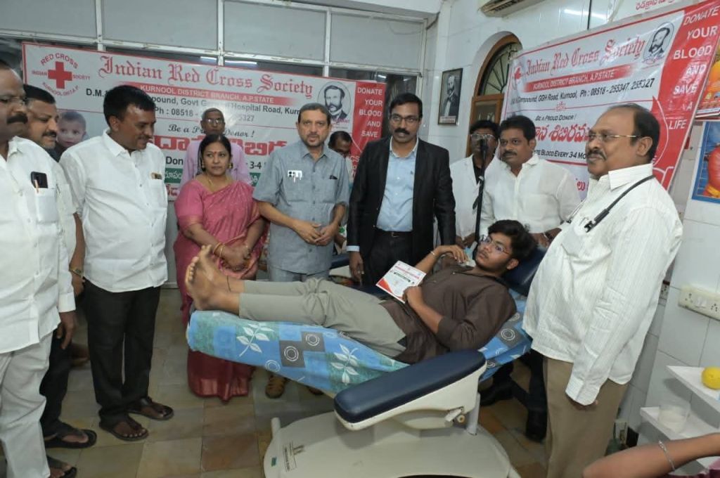 కర్నూలు కలెక్టరేట్ దగ్గర ఉన్న ఇండియన్ రెడ్ క్రాస్ సొసైటీ కర్నూలు బ్లడ్ బ్యాంక్ లో శనివారం ఈగల్ టీం ఆధ్వర్యంలో రక్తదాన శిబిరం నిర్వహించారు.