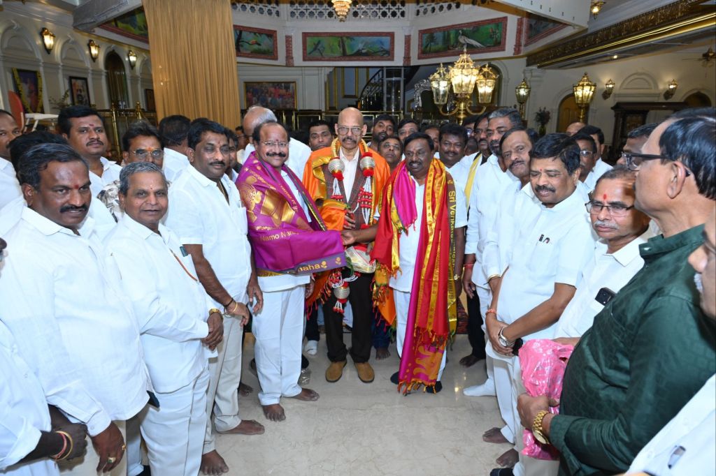 ప్రపంచంలో ఉన్న ఆర్యవైశ్యులందరూ ప్రాంతాలకు అతీతంగా కలిసిమెలిసి ఉండాలని మాజీ రాజ్యసభ సభ్యులు బిజెపి వెంకటేష్ అన్నారు. తెలంగాణ రాష్ట్ర ఆర్యవైశ్య మహాసభ నూతన అధ్యక్షునిగా ఎన్నికైన అమరవాది లక్ష్మీనారాయణ ఈరోజు టీజీ స్వగృహంలో మర్యాదపూర్వకంగా కలిశారు. ఈ సందర్భంగా తెలంగాణ, ఆంధ్రప్రదేశ్ రాష్ట్రాల నూతన అధ్యక్షులుగా ఎన్నికైన అమరవాది లక్ష్మీనారాయణ, ఇల్లూరు లక్ష్మయ్య లను టీజీ వెంకటేష్ ఘనంగా సన్మానించారు. ఈ సందర్భంగా ఆయన మాట్లాడుతూ ఆంధ్ర తెలంగాణ ప్రాంతాలు వేరైనప్పటికీ ఆర్యవైశ్యులంతా ఒకటేనని అన్నారు. తాను ఎంపీగా ఉన్నప్పుడు దేశవ్యాప్తంగా ఉన్నటువంటి 45 మంది ఆర్యవైశ్య ఎంపీలను ఏకతాటిపై తెచ్చి ఆర్యవైశ్యుల సమస్యల పరిష్కారానికి కృషి చేసినట్టు తెలిపారు. ప్రాంతాలకు అతీతంగా అందరూ కలిసిమెలిసి ఉన్నప్పుడే సమస్యల పరిష్కారానికి సులువైన మార్గాలు లభిస్తాయిని టీజీ వెంకటేష్ తెలిపారు. ఆర్యవైశ్యులకు ఎటువంటి సమస్యలు వచ్చినా తాను ముందుండి సహాయ సహకారాలు అందిస్తానని టీజీ తెలిపారు. తెలంగాణ ఆర్యవైశ్య మహాసభ నూతనంగా నిర్మించ తలపెట్టిన భవన సముదాయలకు తన వంతుగా సహకారం అందిస్తానని టీజీ వెంకటేష్ అన్నారు. ఈ కార్యక్రమంలో ఆర్యవైశ్య మహాసభ నాయకులు ఇరుకుల రామకృష్ణ, శంషాబాద్ గణేష్, శ్రీనివాస్, మల్లికార్జున తదితరులు పాల్గొన్నారు.