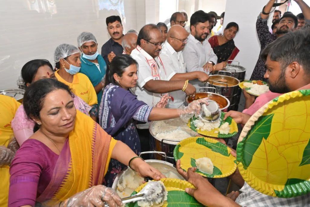 *స్థానిక నంద్యాల చెక్ పోస్ట్ దగ్గర ఉన్న అన్న క్యాంటీన్ ను ప్రారంభించి ప్రజలకు భోజనం వడ్డిస్తున్న జిల్లా కలెక్టర్ డాక్టర్ ఏ.సిరి గారు, పాణ్యం ఎమ్మెల్యే గౌరు చరిత గారు*