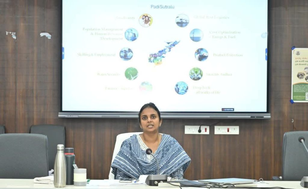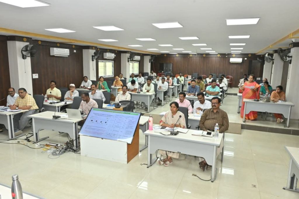 *కలెక్టరేట్ కాన్ఫరెన్స్ హాల్ లో జీరో పావర్టీ, మానవ వనరుల అభివృద్ధి, నీటి భద్రత, నైపుణ్యం,ఉపాధి కల్పన, ఫార్మర్ అగ్రిటెక్ , స్వచ్ఛాంధ్ర తదితర 10 సూత్రాల అమలు పురోగతి పై సంబంధిత అధికారులతో సమీక్ష నిర్వహిస్తున్న జిల్లా కలెక్టర్ డా.ఏ.సిరి గారు*