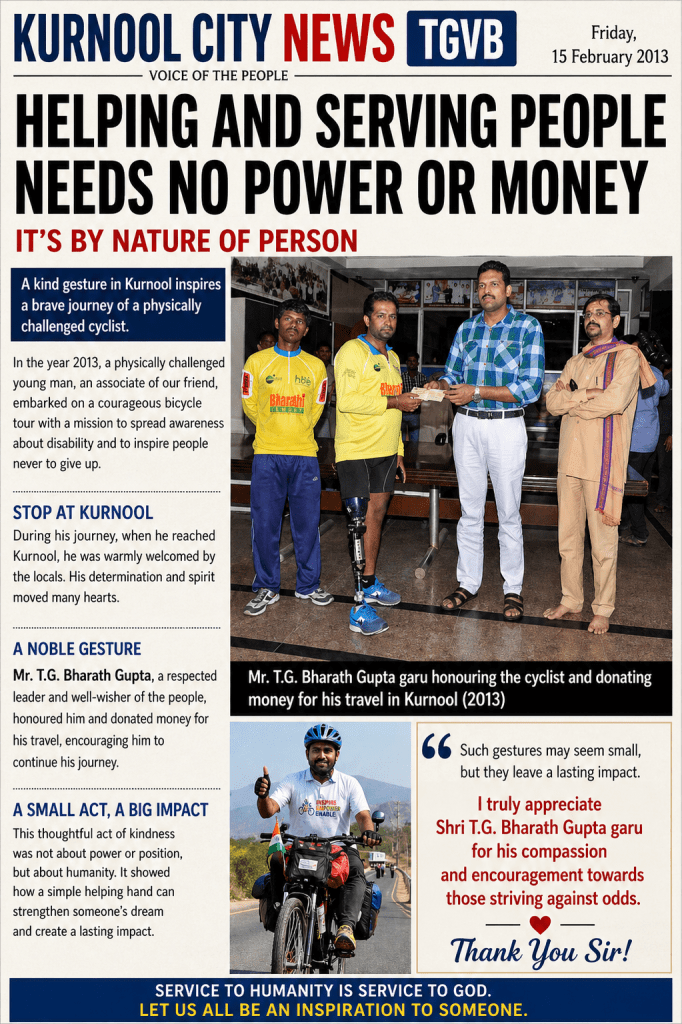 ###2013###Generosity of TG Bharath gupta ###not money it’s inspiration to many ###